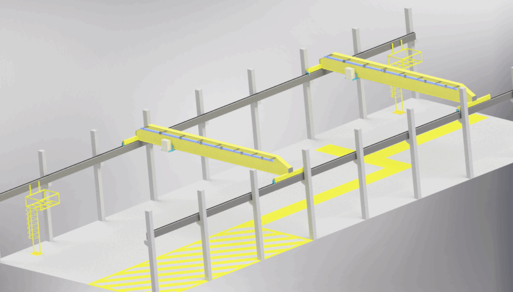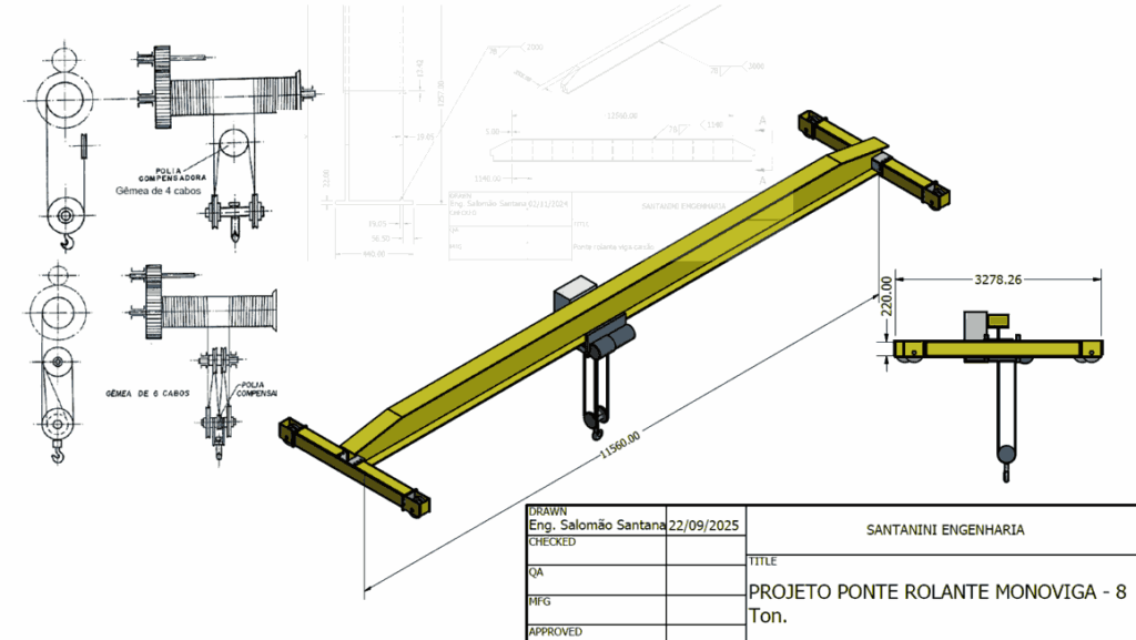 Projeto de Ponte Rolante – Executamos o dimensionamento completo dos componentes mecânicos de equipamentos para movimentação e transporte de cargas.